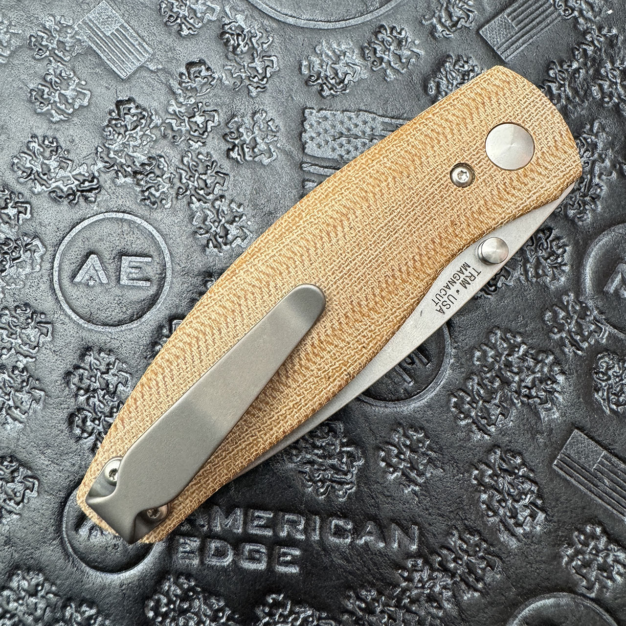 This model comes with natural micarta scales, and a CPM-MagnaCut stainless steel blade. Right hand tip up carry only. Brand new in box.