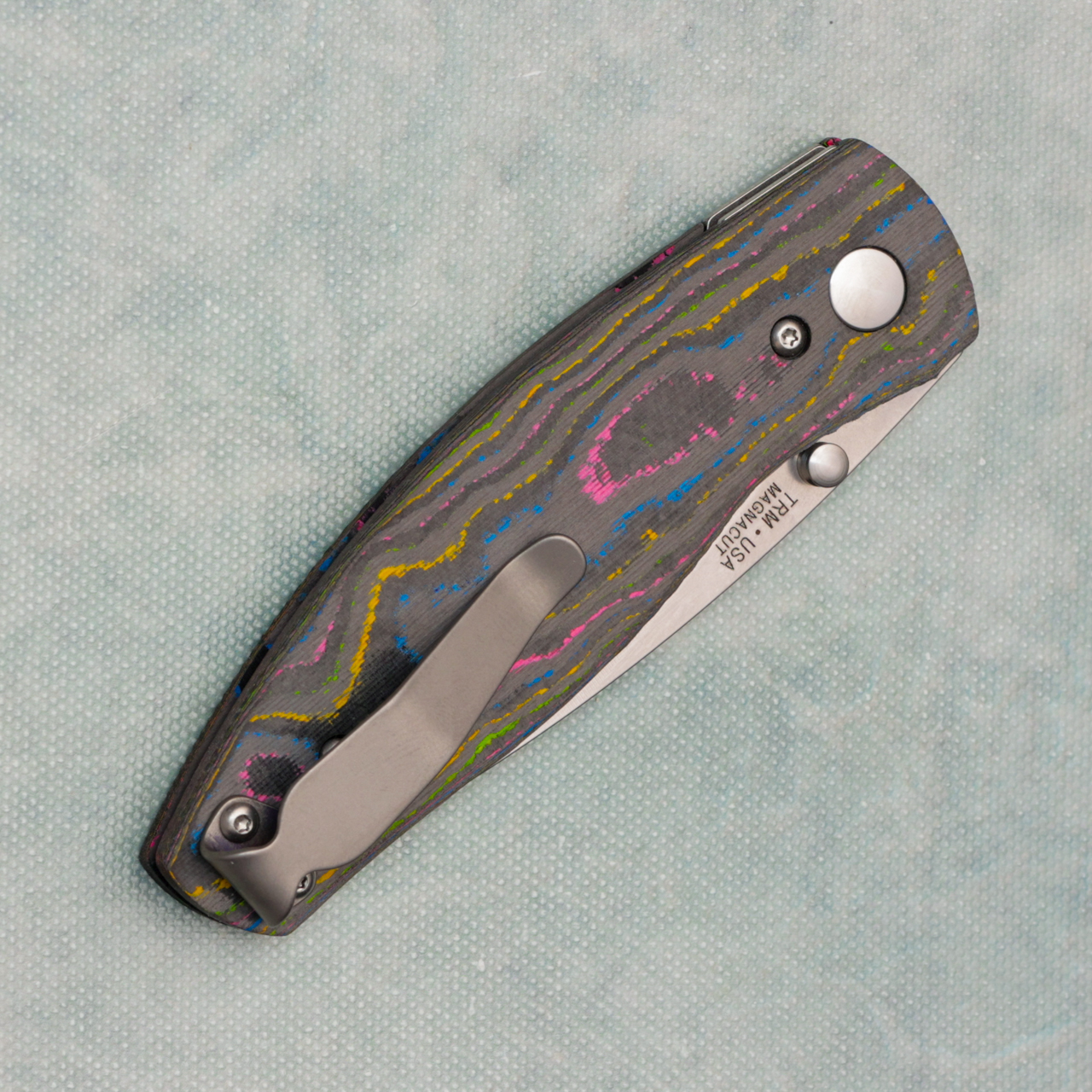 Three Rivers Manufacturing TRM Neutron 2 Liner Lock 80's Camo Carbon 3D Handles Stonewashed MagnaCut Blade