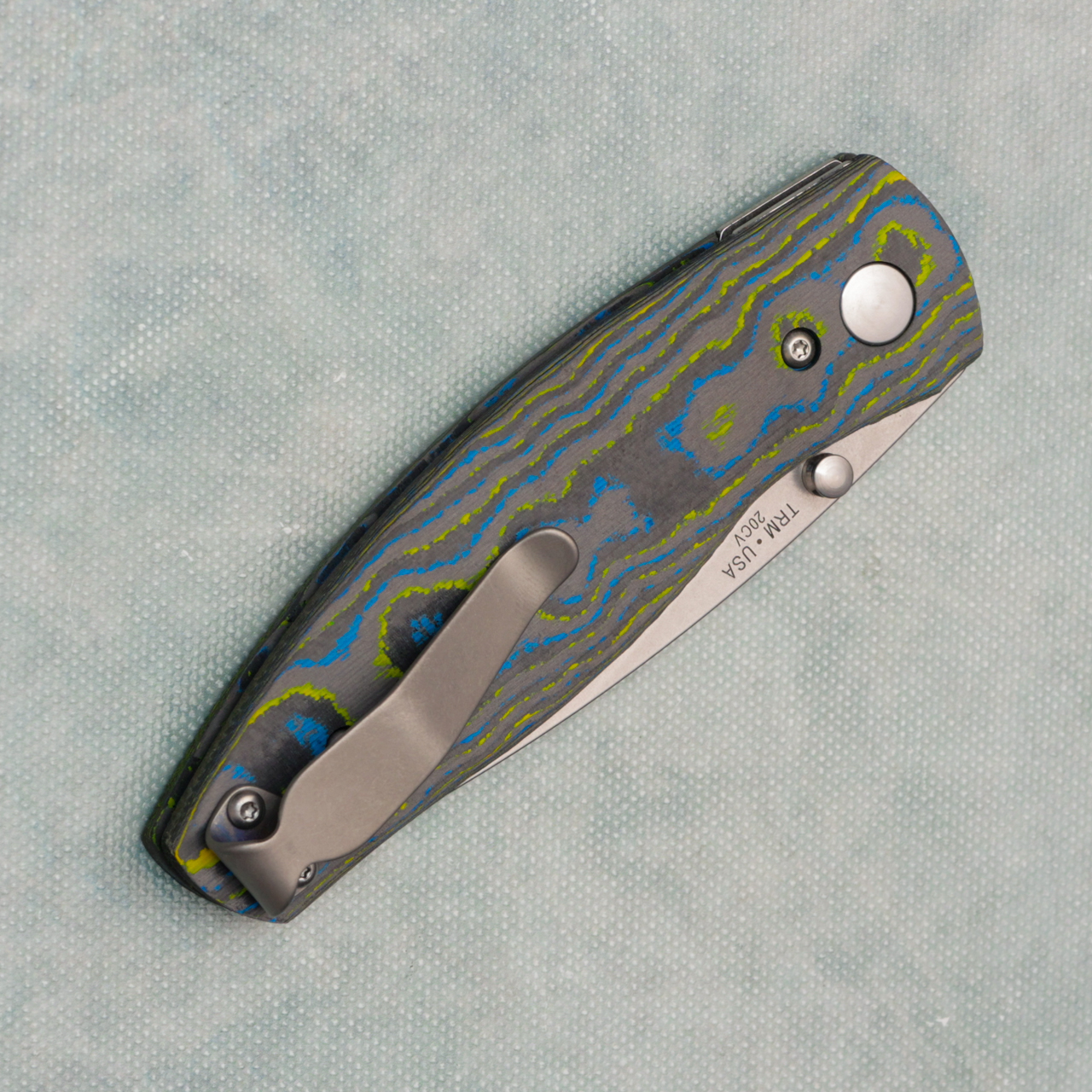 Three Rivers Manufacturing TRM Neutron 2 Liner Lock Bolts Camo Carbon Handles Stonewashed 20CV Blade
