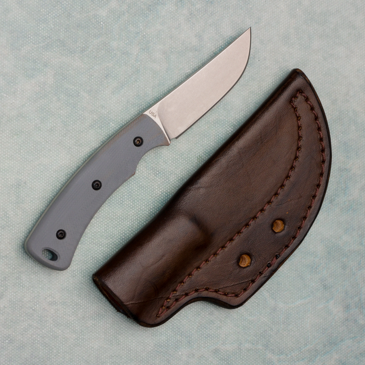 Three Rivers Manufacturing TRM Tagalong Fixed Blade Slate Gray G10 Handles Stonewashed Blade