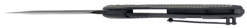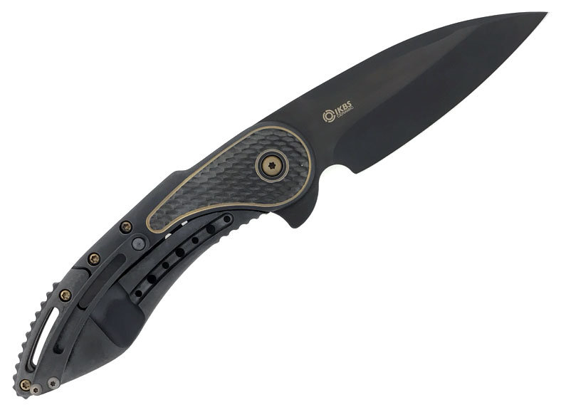 This frame lock flipper features a .150 thick Bohler N690 hand ground blade that has been 2 toned (satin/tumbled) and DLC coated. 6AL4V Titanium scales have been tumbled and then the scallop texture has been re-machined to create a shiny finish. Scales are then DLC coated and re-machined yet again in order to gold anodize the borders. The bolt on lock and pocket clip has been jewel iced and then DLC coated to create a black ice finish. All hardware has been heat colored gold as well. The Glimpse 5.5 is equipped with ceramic IKBS bearing system which will eliminate the possibility of corrosion of the bearings and increase the smoothness of the flipping action. The Glimpse 5.5 still features the Begg designed replaceable titanium lock bar with built in over bend and ceramic detent compression protection as well as a 2 tone DLC coated fluted titanium back spacer. Excellent pocket clip and large lanyard loop.