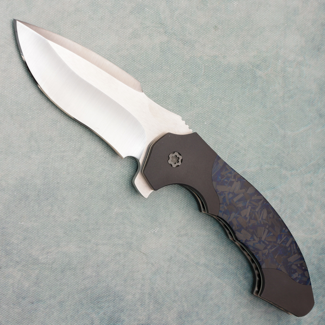 Todd Fischer Custom Archangel Flipper Liner Lock Titanium/Shred Carbon Fiber Handle Satin Blade