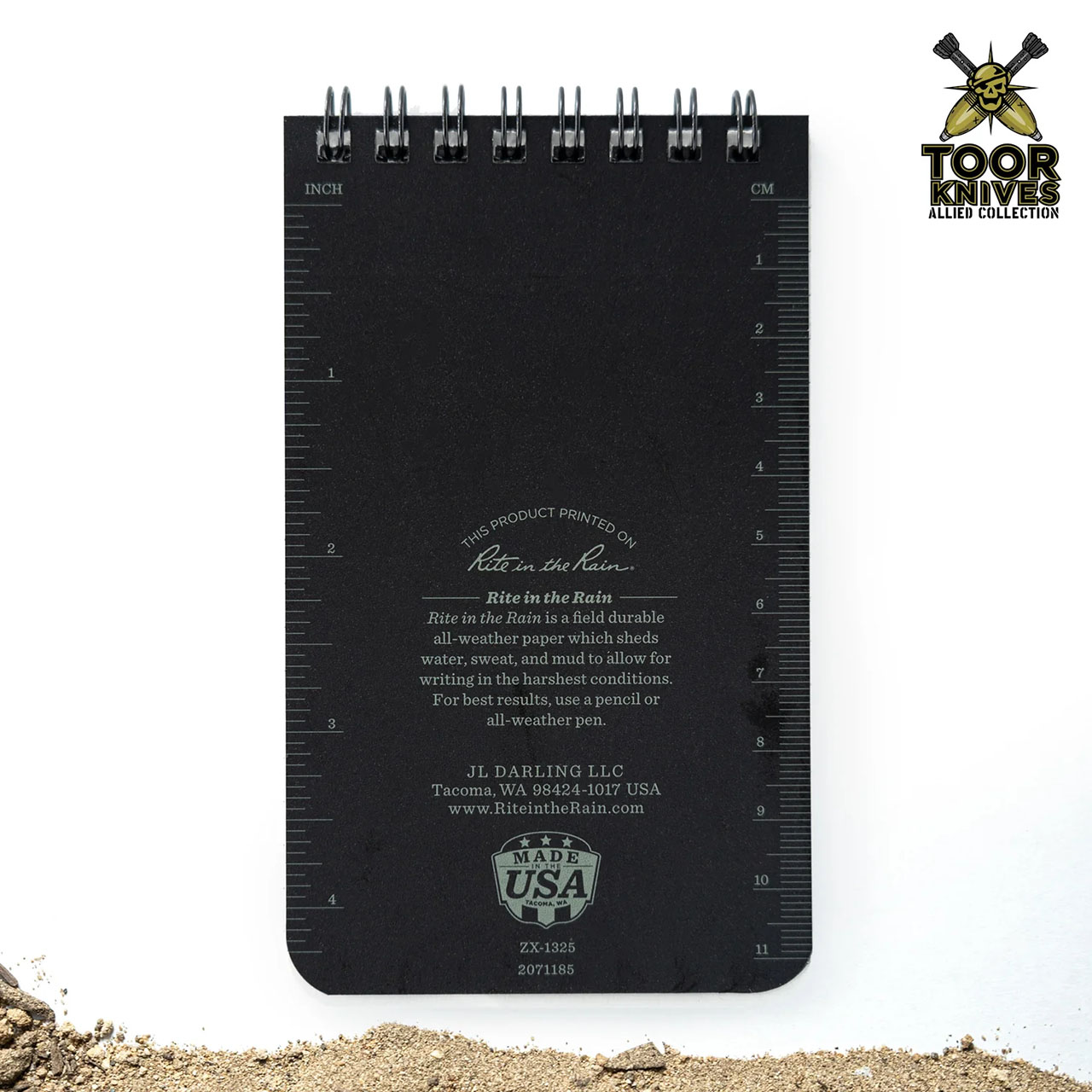 The Allied Field Book is a Rite in the Rain Notebook for those who demand reliability in all conditions. Designed with the Allied Collection logo on its durable cover, this 3 x 5-inch notebook is a nod to the grit and determination of the Allied forces who faced harsh environments and relentless challenges during WWII.