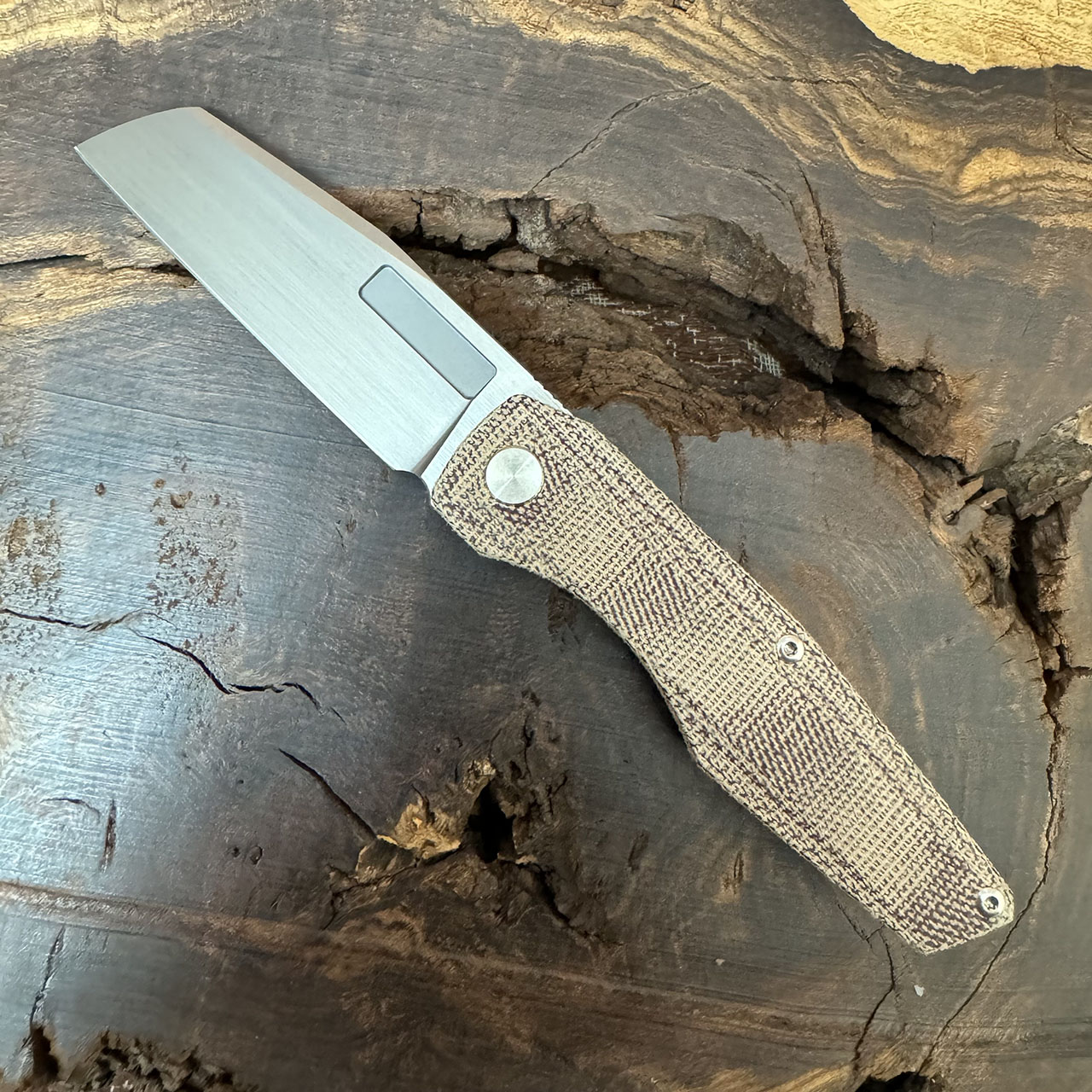 Vero Engineering Axon Mini Liner Lock Natural Micarta Handle Hand Satin Blade