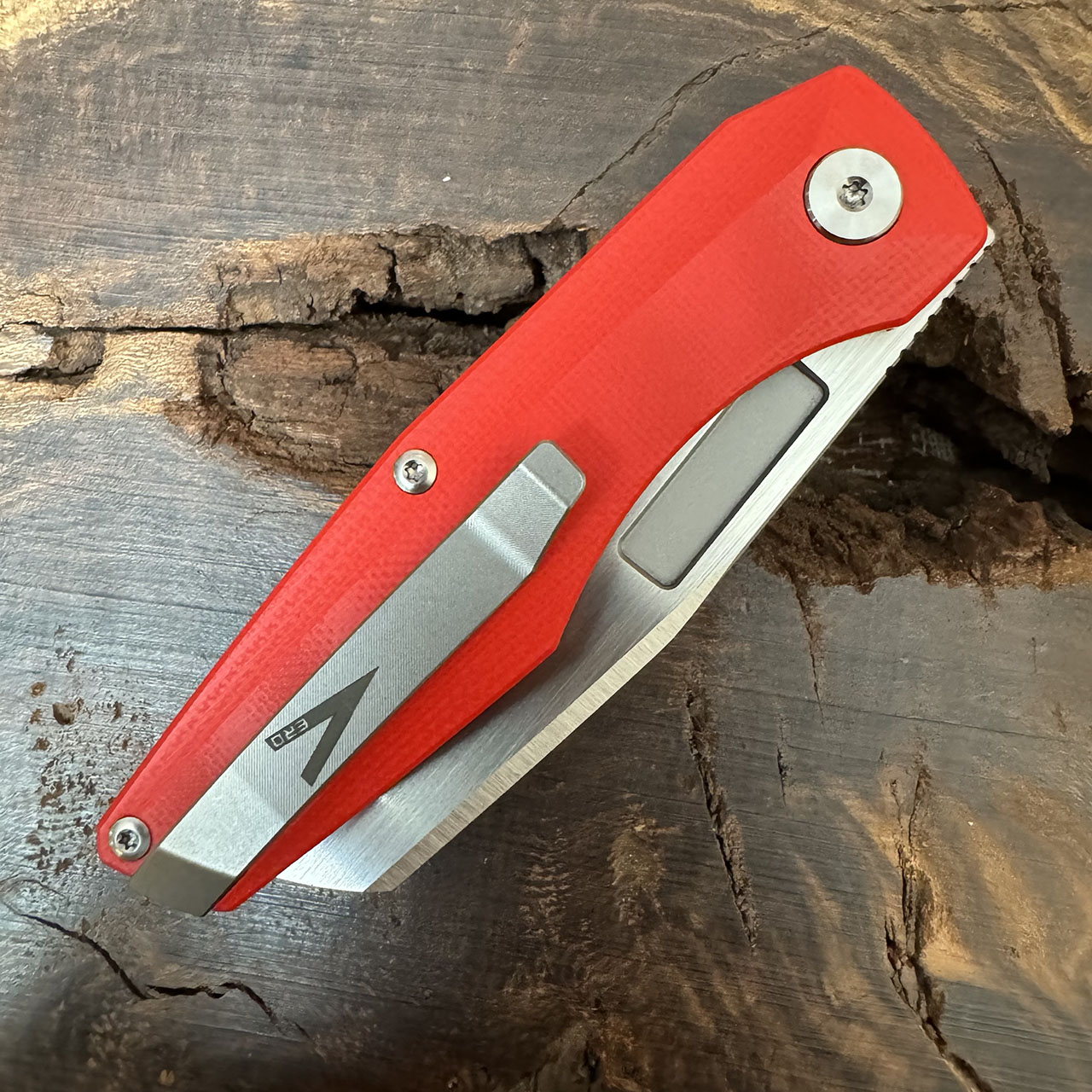 Vero Engineering Axon Mini Liner Lock Red G10 Handle Hand Satin Blade