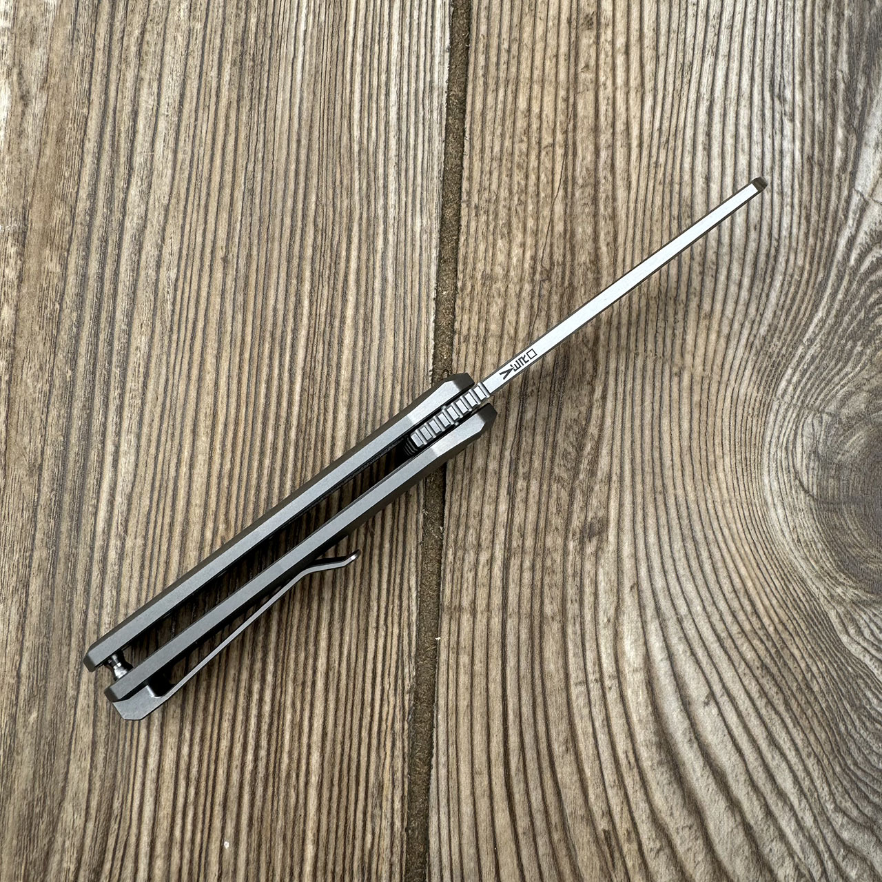 The Neuron has multiple opening methods. Flipper, front flipper, miller pocket. The Neuron is a non locking Double Detent knife. The M390 blade runs on ceramic bearing giving it a very smooth action, both opening and closing. It is held securely in pocket with its Titanium 3D milled pocket clip.. This model features a hand satin blade and stonewashed titanium scales. New in box.