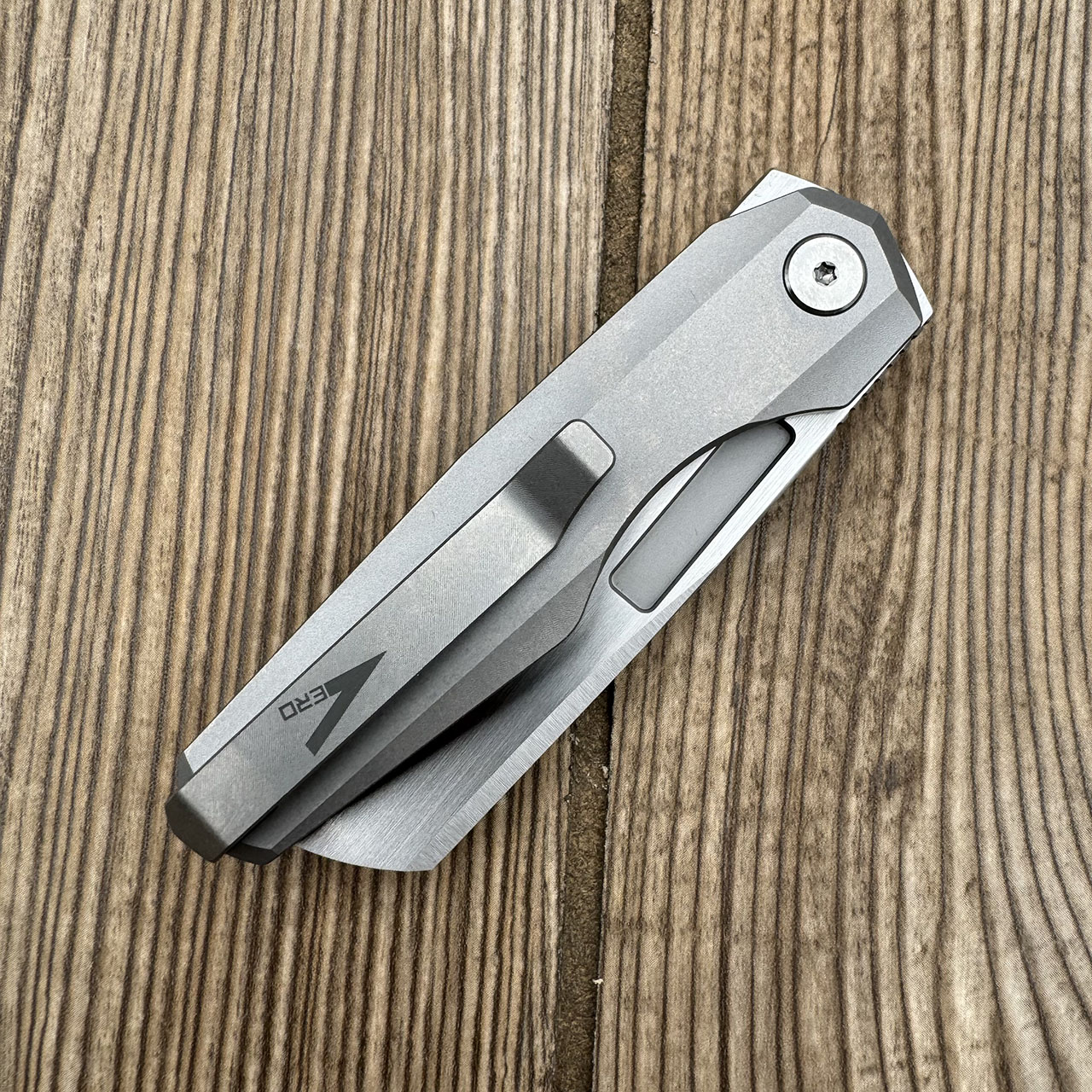 Vero Engineering Neuron Non Locking Double Detent Stonewashed Titanium Handle Hand Satin Blade