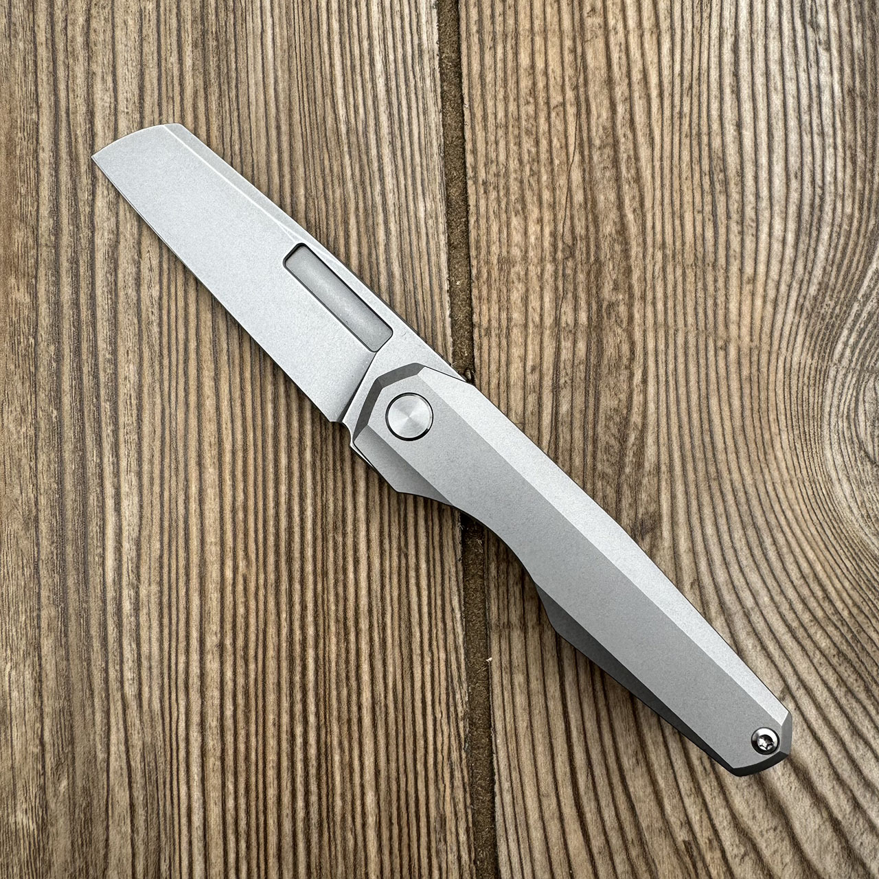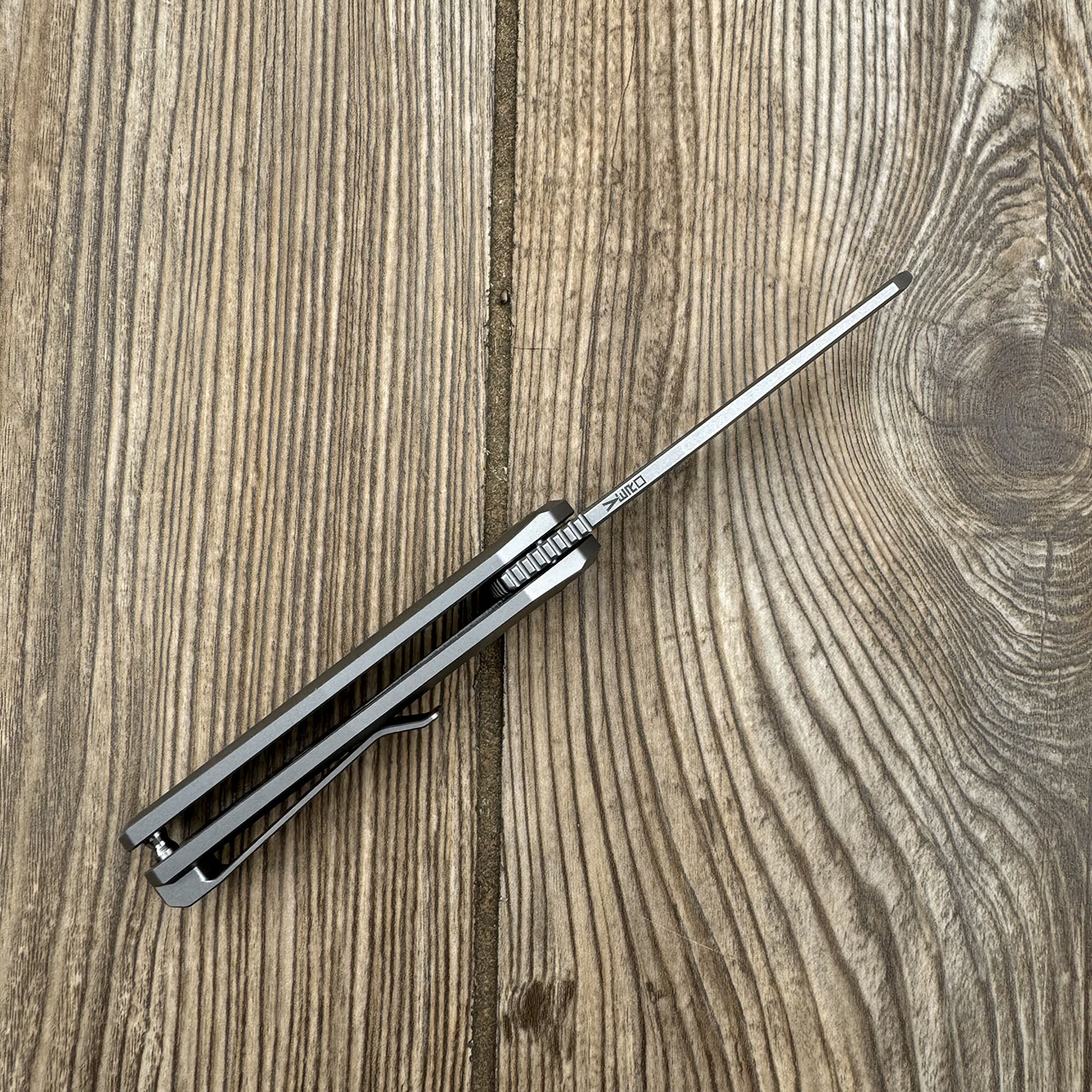 The Neuron has multiple opening methods. Flipper, front flipper, miller pocket. The Neuron is a non locking Double Detent knife. The M390 blade runs on ceramic bearing giving it a very smooth action, both opening and closing. It is held securely in pocket with its Titanium 3D milled pocket clip.. This model features a stonewashed blade and stonewashed titanium scales. New in box.