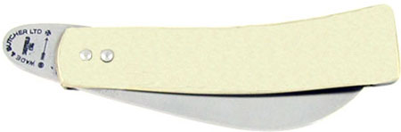 Awesome curved nickel silver handle scales. Satin finished stainless steel sheepsfoot blade with protruding tang that is used to open the knife easily. Tang stamped WADE & BUTCHER LTD SHEFFIELD ENG - SHELDON KNIFE STAINLESS with logo and U.K. patent numbers. Nickel silver handle pins. This knife was made in Sheffield, England between 1819 and 1918. Very cool knife in mint condition.