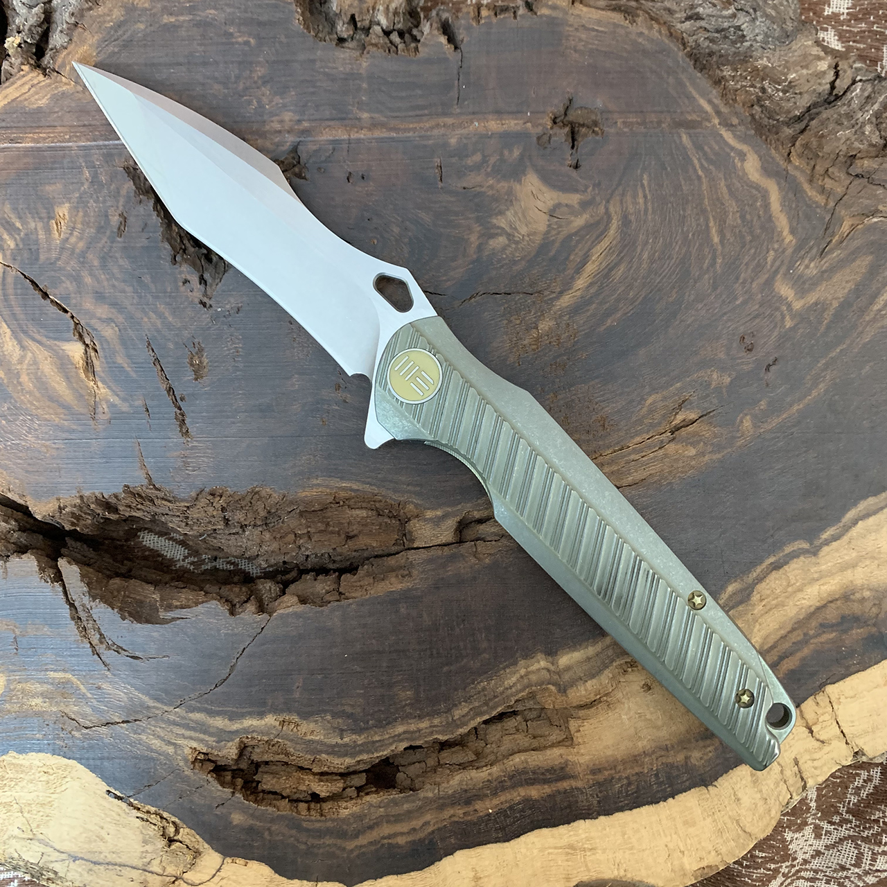 The 612F from WE and Ferrum is the knife you've been looking for. It has a sick looking blade and great action. Green titanium handles and a satin stonewashed CPM-S35VN blade. Brand new in box.