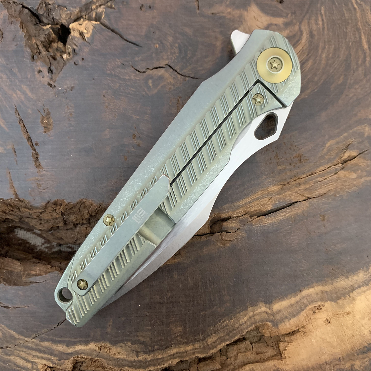 We Knife Co. 612F Frame Lock Green Titanium Handle Stonewashed Blade WE612F