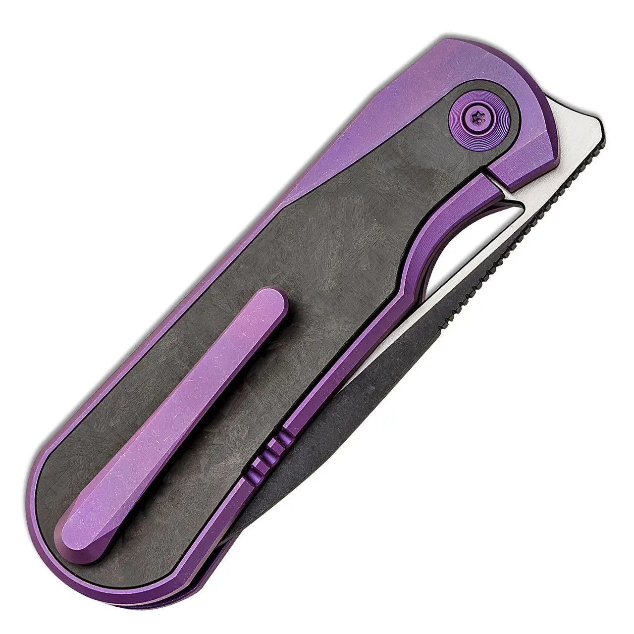 We Knife Co. Baloo Frame Lock Purple Titanium Handles With Shredded Carbon Fiber Overlays Two Tone Blade WE21033-3
