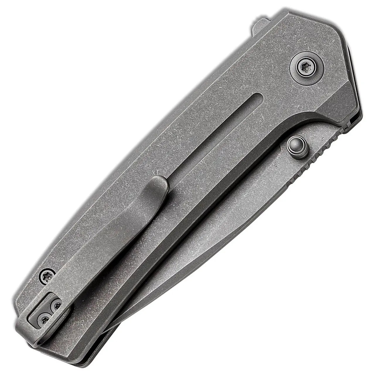 A sub three inch button lock with premium materials and features, The Culex is EDC perfection with a flipper tab and thumb stud opening methods, This model has gray titanium handles, and a stonewashed CPM-20CV drop point blade, and a reversible deep carry pocket clip. Brand new in box.
