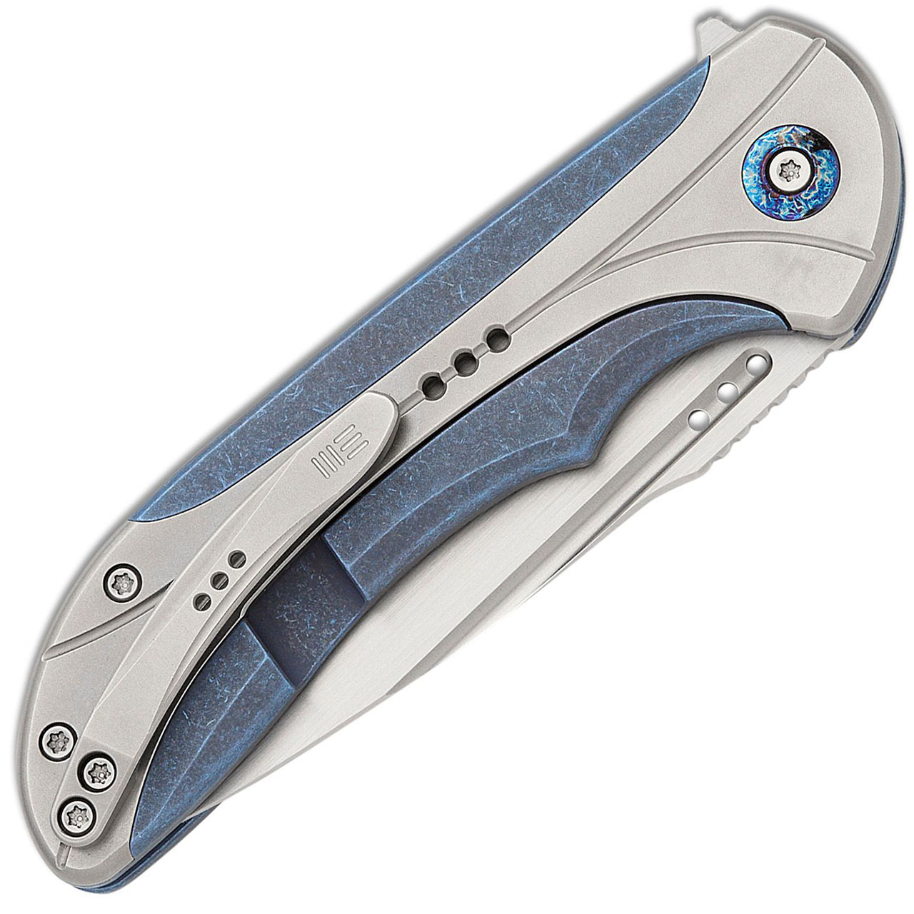 We Knife Co. Equivik Frame Lock Blue Titanium Handle With Blasted Titanium Inlay Hand Rubbed Satin Blade WE23020-3