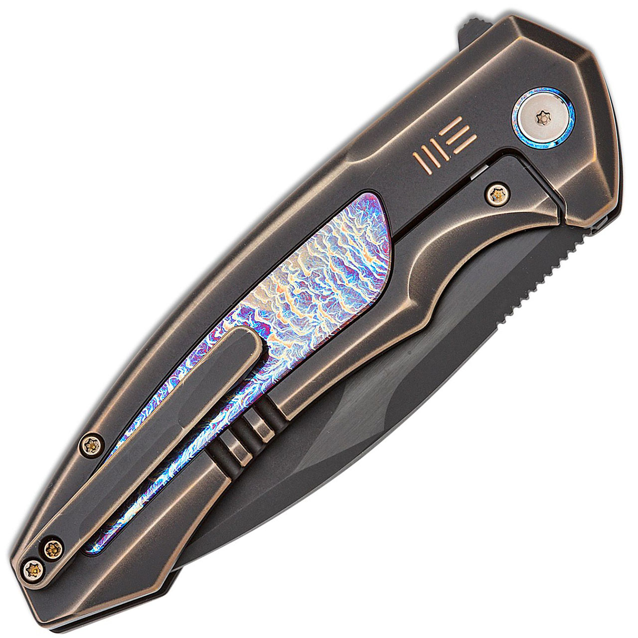 We Knife Co. Hyperactive Frame Lock Bronze/Black Titanium Handle With Flamed Titanium Inlay Blackwashed Vanax Blade With Black Brushed Flats WE23030-4