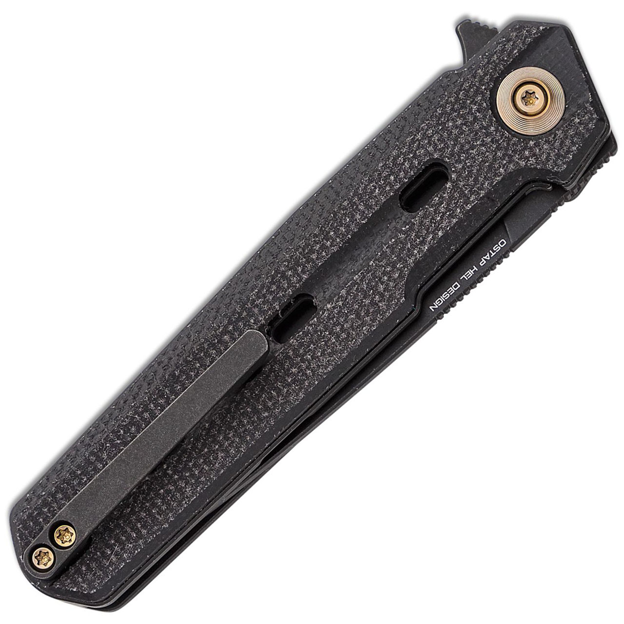The Navo is a great and ergonomic flipper by Ostap Hel. It has beautiful lines and an overal very classy look. The drop point blade is CPM-20CV stainless steel, and it has a reversible clip. Brand new in box.