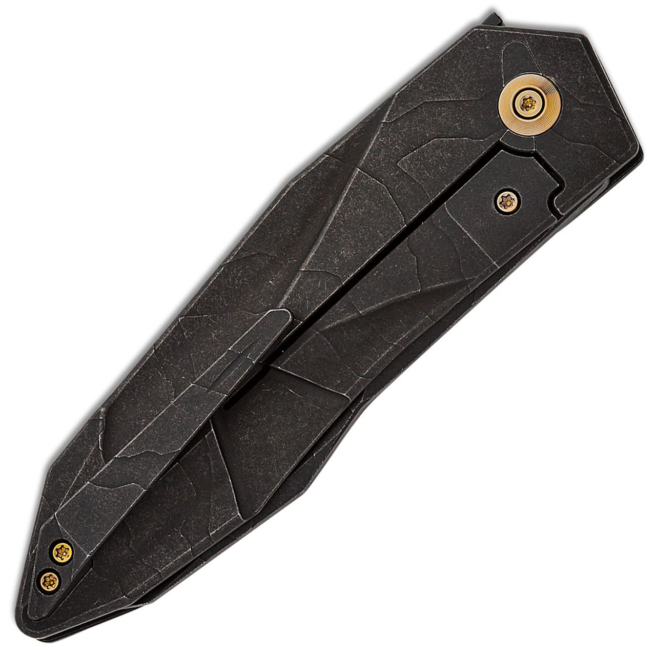 We Knife Co. Solid Frame Lock Black Etched Titanium Integral Handle Blackwashed Etched Blade WE22028-5