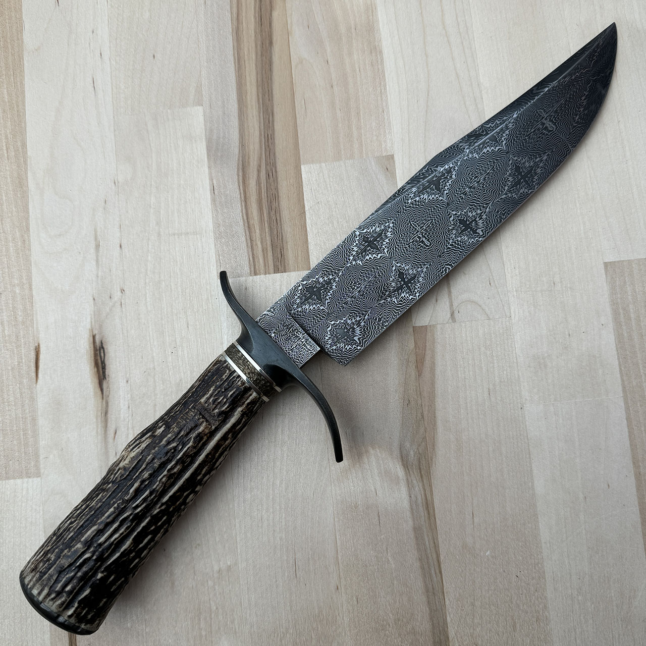 Wilburn Forge Custom ABS Mastersmith Bowie Fixed Blade Stag Handles Mosaic Damascus Blade Sole Authorship