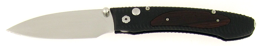 Awesome textured black mil-spec hard anodized 6061 aluminum handle scales with beautiful cocobolo wood inlays. Mirror polished D2 tool steel drop point blade etched with the William Henry logo. Reversible thumb stud. Reversible pocket clip for tip up carry. Really a high quality and beautifully done lightweight gentleman's pocket knife. Serial number #042. Brand new in display box with paperwork.