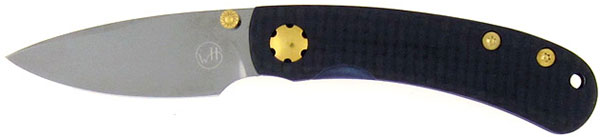 Awesome lightweight carbon fiber handle scales. Black boron coated stainless steel drop point blade etched with the William Henry logo. Reversible thumb stud. Titanium liners and removable pocket clip for tip down carry. Lanyard hole. All the hardware is 24kt gold plated. Really a high quality and beautifully done lightweight gentleman's pocket knife. Brand new in two piece box.