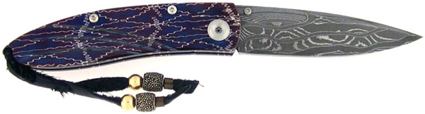 William Henry Monarch Button Lock Heat Blued Damascus B05