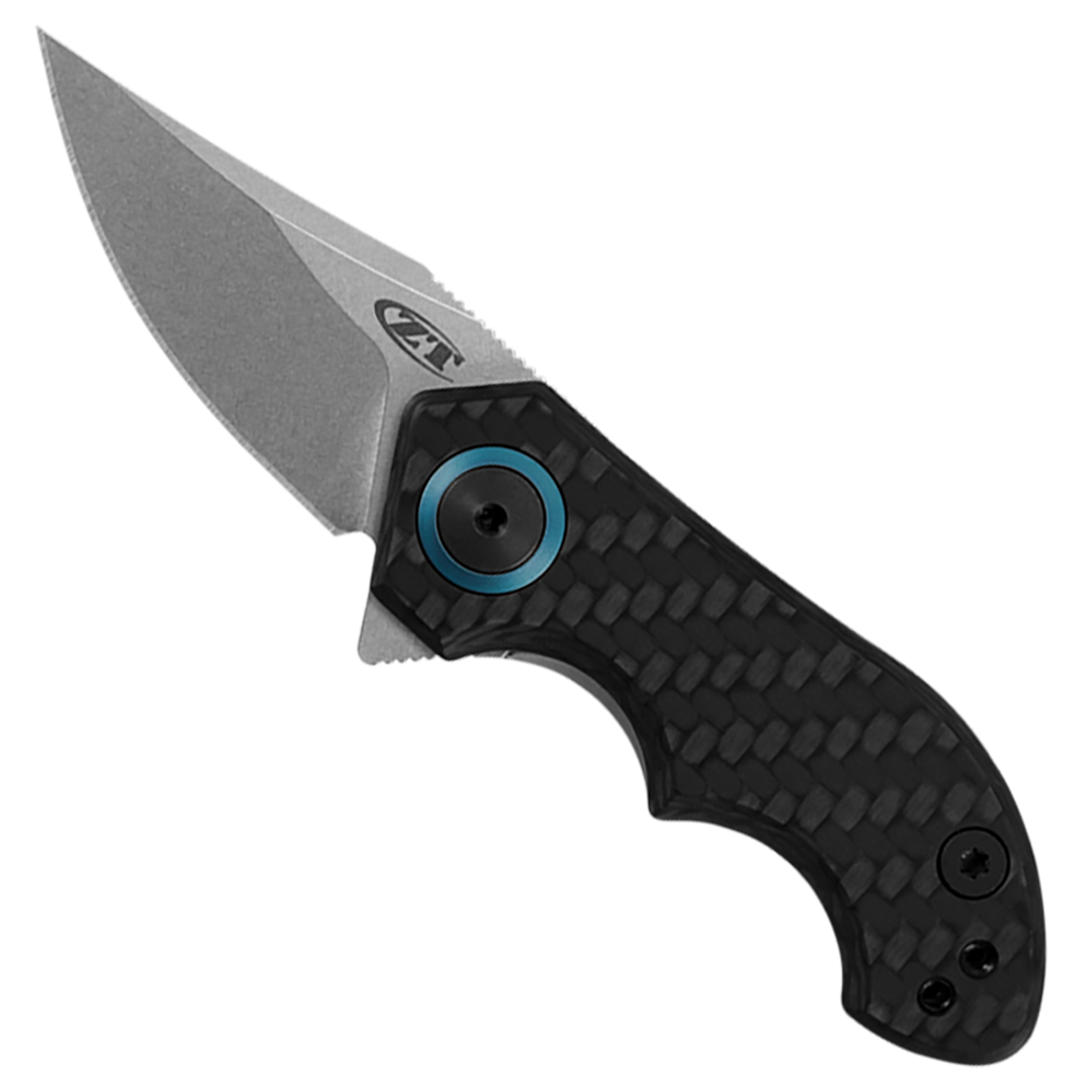 For eye catching looks, ZT added a decorative pivot with a blue anodized pivot ring and matching tube spacers, which make an attractive contrast with the dark carbon fiber. ZT’s smooth KVT ball bearing opening makes it quick, easy and somewhat addictive to open and close the 0022. Whether as an office appropriate EDC or even as a backup knife, the compact 0022 packs an outsized punch of performance and quality. Brand new in box.