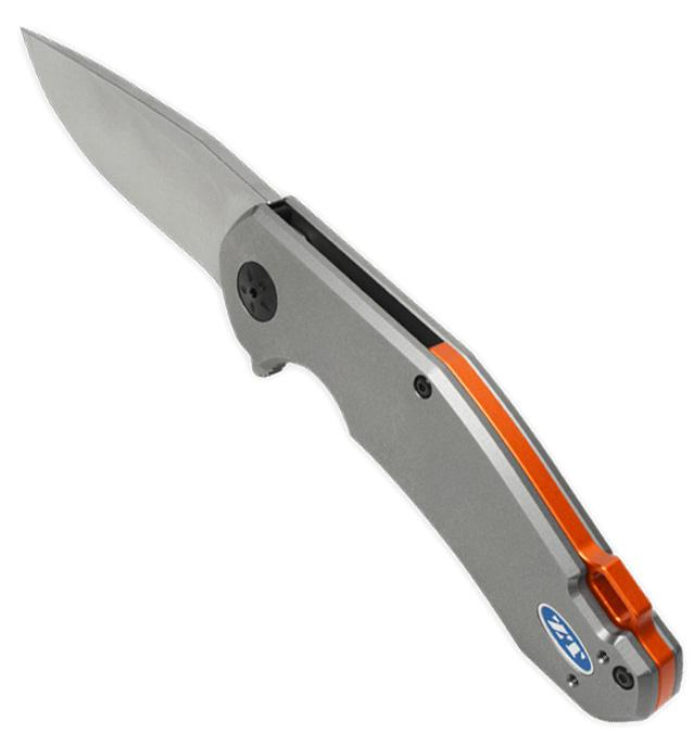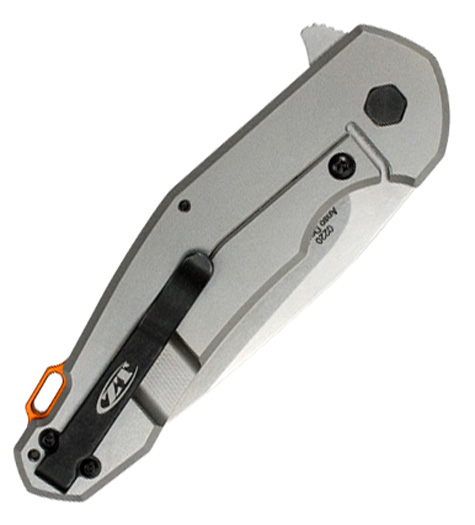 To enhance the 0220’s custom look and feel, Jens added a decorative pivot as well as a ZT logo medallion near the butt of the knife. Then, for an additional flash of color—as well as additional utility—the aluminum backspacer is anodized in eye-catching orange and has a built-in lanyard attachment. Brand new in box.